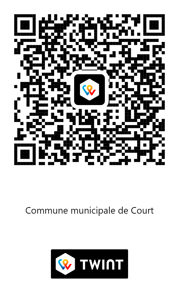 - Contacter l'administration municipale par téléphone (au 032 497 71 10) et, lorsque le personnel municipal vous en fait la demande, payer la carte journalière dégriffée via le code QR Twint ci-dessous (le prix vous est indiqué par téléphone). La preuve de paiement doit ensuite être envoyée par courriel à l'administration municipale. Une fois cette preuve reçue, la carte journalière dégriffée vous est transmise par voie électronique.